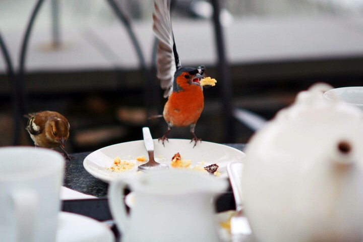 Scone and Tea time. 먹다 남은 스콘을 채가는 앙증 맞은 새.